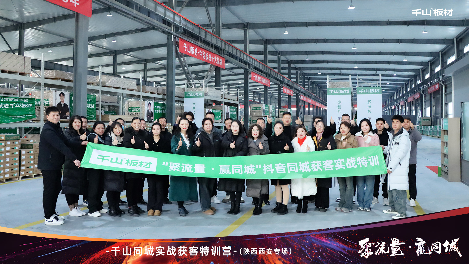 12月17日-18日,千山同城實戰獲客特訓營——陜西西安專場正式開營!本次特訓匯聚了近30位經銷商合作伙伴,助力陜西倉全面掌握抖音同城運營知識,實現精準獲客、高效轉化,為千山板材陜西倉的渠道拓展注入強勁動能。借勢新媒體讓同城流量成為拓客“寶地”跟上新賽道風向,拓展流量致勝渠道。活動開始,千山板材陜西倉總經理王國