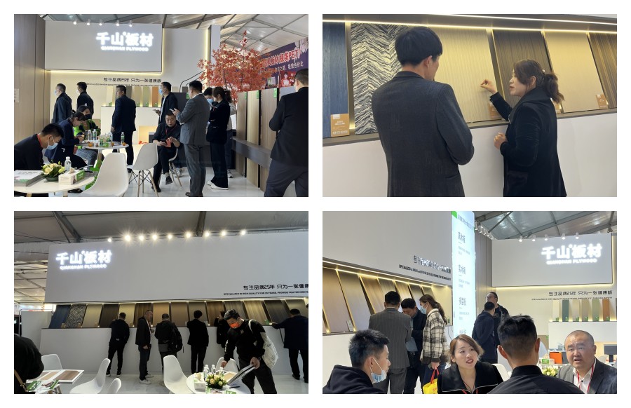 此次展會,千山以“高端家具板”為主題,打造簡約、有設計感的體驗場館。其中,家具板新品真木板、實木板、同色室內門備受關注,吸引眾多觀展客戶圍觀咨詢。