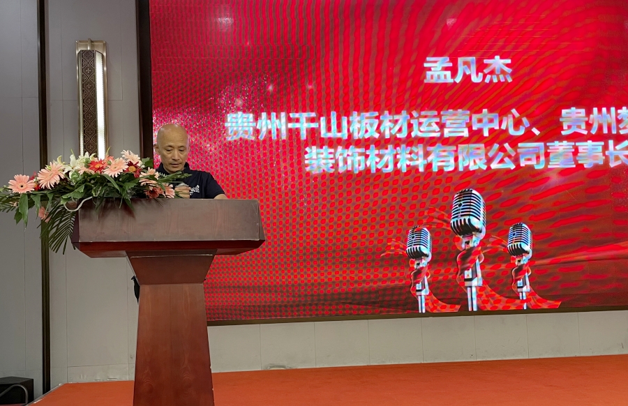 貴州千山板材運營中心負責人孟凡杰致辭。孟總講到,與千山攜手十數春秋,從市場空白到市場領先,離不開千山家人的信任與支持。砥礪奮進的十年,見證了千山品牌的成長壯大,也堅信千山會走的更遠、更穩、更高!