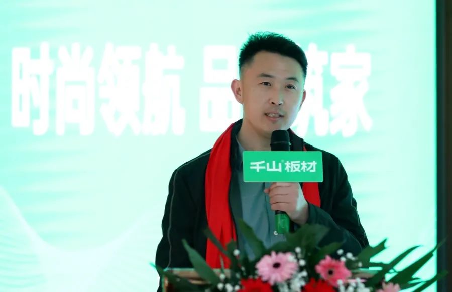 千山品牌事業部總經理王松致辭。王總表示,山東倉是千山家具板全國第一個現貨倉,歷時一年,在山東區域各合作伙伴的共同努力下,戰績斐然,接下來也將持續圍繞增長做品牌提升。