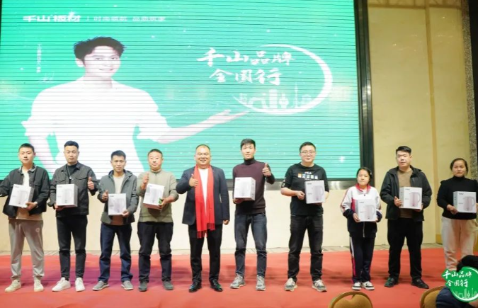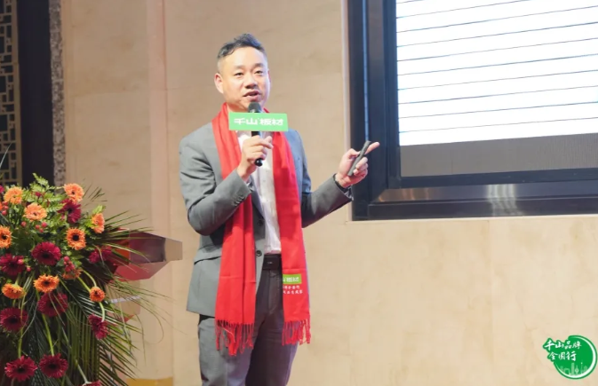 千山品牌事業部品牌總監朱英翔致辭。朱總表示,千山致力于“成為全國知名的家居、裝飾材料優秀綜合運營服務商”,堅持樹立品牌形象,加強品牌拉力,也將攜手全國的合作伙伴,開辟新增長曲線。