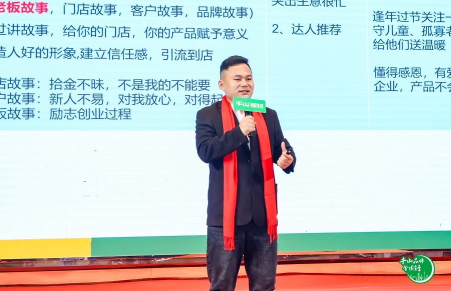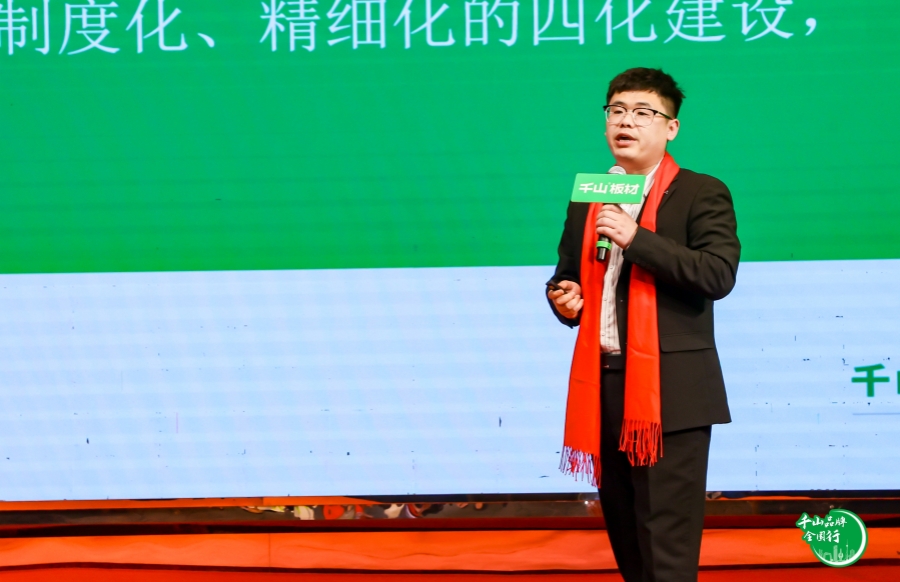 千山板材銷售部總監(jiān)董向陽致辭。董總分享到,當(dāng)前的市場(chǎng)環(huán)境競(jìng)爭(zhēng)激烈,要聚焦產(chǎn)品和服務(wù),協(xié)同一系列營銷組合拳,才能支撐業(yè)務(wù)的高速增長,千山將和伙伴們攜手共進(jìn),合作共贏。