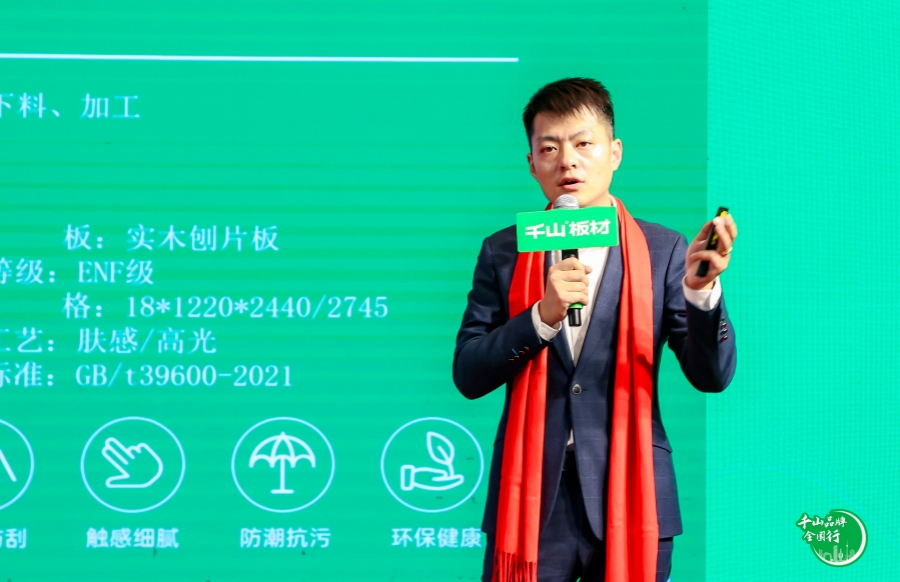 活動(dòng)現(xiàn)場(chǎng),千山板材全新產(chǎn)品驚艷亮相,并由大區(qū)經(jīng)理史生平進(jìn)行產(chǎn)品解讀。千山聚焦市場(chǎng)和用戶需求,將工藝、功能、美學(xué)貫徹到產(chǎn)品升級(jí)中,打造更全、更精的產(chǎn)品體系。