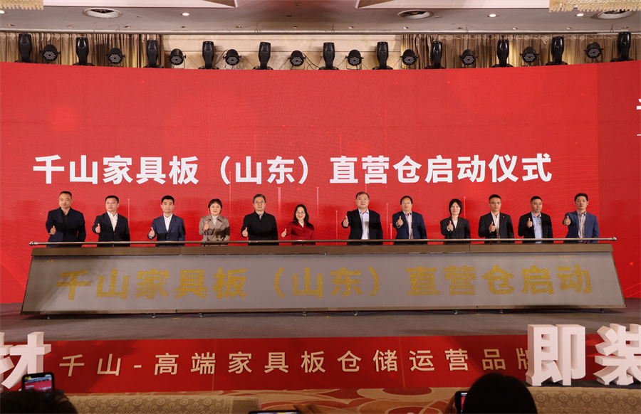 2023年4月,以“聚焦行業(yè)新藍(lán)海 共創(chuàng)千山新時(shí)代”為主題的千山2023全國(guó)經(jīng)銷(xiāo)商大會(huì)暨千山家具板(山東)直營(yíng)倉(cāng)啟動(dòng)在總部山東臨沂盛大舉行,千山家具板山東直營(yíng)倉(cāng)正式起航,實(shí)力開(kāi)啟千山發(fā)展的新征程。