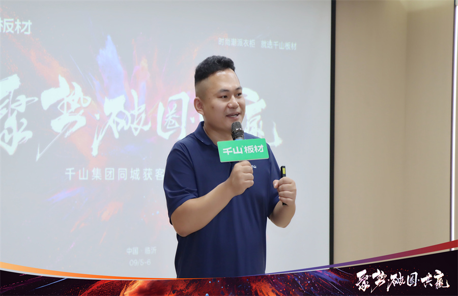 打好流量牌 把握線上渠道 將同城獲客作為重要抓手打造IP 在開營致辭中,千山板材山東倉總經理楊秀山首先對來到總部學習的伙伴們表示熱烈歡迎!楊總分享到,面對劣幣驅逐良幣的激烈競爭環境,破局向上、流量打造勢在必行。如今是短視頻和直播時代,大家要提高自身專業度,布局線上渠道,驅動增長。也希望家人們把握學習好時機,滿載而歸。